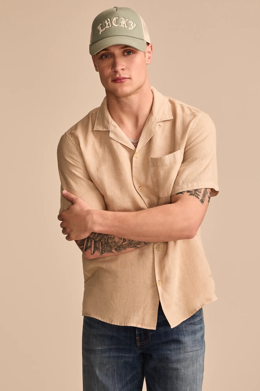 short sleeve linen camp collar shirt