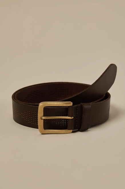 For many men, leather is the belt material of choice thanks to its combination of classic looks, flexible comfort and long-lasting durability. Our men's leather belt selection is available in a wide variety of finishes and treatments, including washed, tooled, studded and perforated to suit your style and enhance your existing wardrobe.