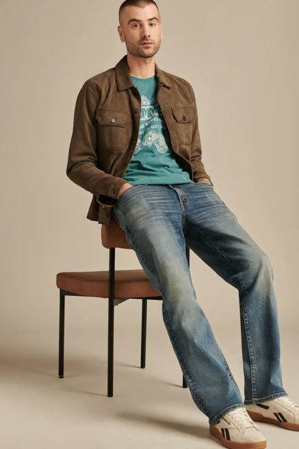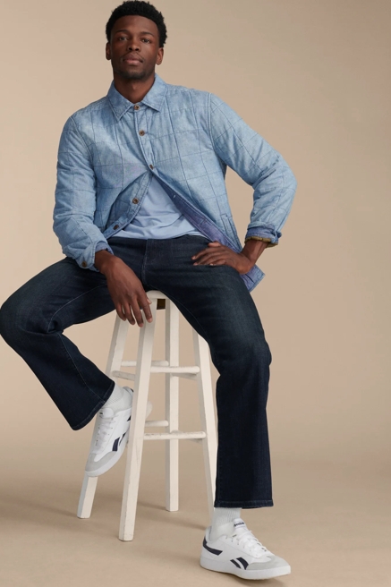 Equal parts rugged and refined, the versatile bootcut jeans options from Lucky are prime examples of our laid-back spirit and dedication to authenticity. Discover premium denim with bootcut jeans for men from Lucky Brand. Men's bootcut jeans embody classic American style and come in original washes, such as Slate — a light blue color that's a staple in every denim lover's collection — and Live Oak, a popular dark blue rinse.