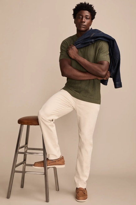 Browse this large and impressive selection at Lucky Brand and discover the best pants for men online or anywhere. Whether you're up-to-the-minute, or just like to look good, you need a few adaptable bottoms in your wardrobe. In this line, you'll find clothing that's perfect for that summer wedding, leading a boardroom meeting at work, or picnicking in the park with that special someone. These nice pants for men offer a tasteful, modern slim cut, and provide a comfortable fit. Manufactured from choice fabrics, they're breathable, soft to the touch, and highly durable. Choose from a diverse collection that includes popular chino pants, suit dress pants that are ideal for wear with a matching blazer, linen pants for warm days, and of course, a massive selection of denim jeans. From casual wear and loungewear, to garments that will help you look dashing and handsome for a special occasion, there's something for everyone in this line. Don't waste time in the morning trying to figure out what to wear. With guys' pants from Lucky Brand and your favorite shirts, you'll find a winning combination in no time. Get out the door quickly and catch your train in style with these brilliant clothes.