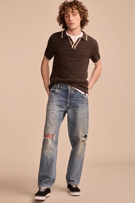 If you’re wondering, “What are tapered jeans?” you’re not alone. This cut of men’s jeans features a straight fit through the hips and thighs, then narrows toward the ankles. Men’s tapered pants are one of the most classic cuts because they give you plenty of flexibility and room to move without adding too much bulk. They also elongate the legs giving you the appearance of a taller stature. This jeans style is one of the less casual cuts, too. When styled right, tapered jeans can become a polished part of business casual looks.
