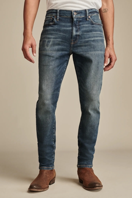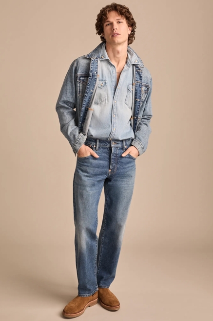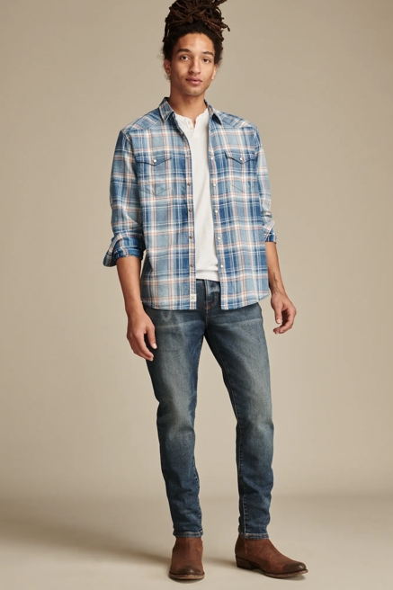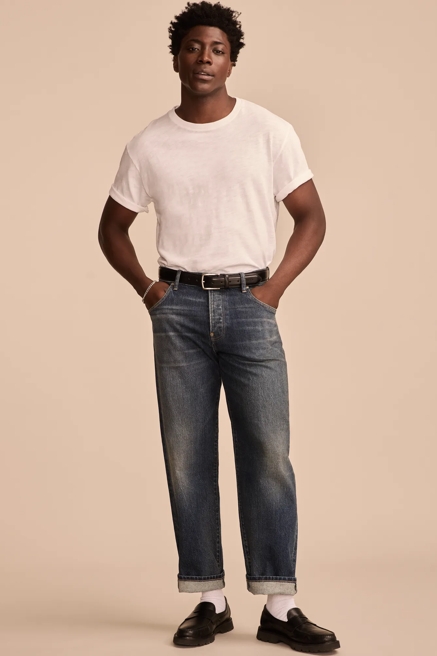 While the tapered cut is a universal style, there are different fits that feature tapered legs. Our athletic fit jeans with a taper are constructed to include a bit more room in the thigh region. They’re especially comfortable for guys with more muscular legs, but they offer the flexibility you’d want when participating in sports. Our vintage loose-fit jeans are built with a very relaxed fit in the hips, thighs and all the way down through the taper. They look more like straight-leg jeans in many ways. Keep an eye on men’s new arrivals to see what other fits we’re featuring with tapered legs.