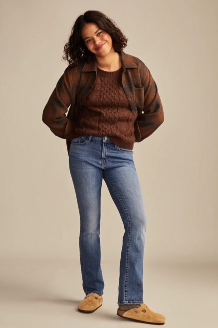 Curvy jeans are a versatile modern classic. Pairing a high-rise cut with a comfortable fit around the hips, they offer a profile that brings out the very best of your shape. The women's curvy jeans range at Lucky Brand cuts a classic silhouette using premium denim materials that blend easy-wearing comfort with real style.