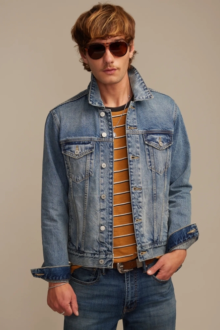 With men's outerwear from Lucky Brand, you'll have a fashionable top layer to pair with your men’s jeans for a range of outings. Rock out to that buzzing new band at this weekend's music festival in a classic men’s denim jacket, or meet your crew for a round of pool at the local dive in a tough-looking leather Bonneville design. From men’ shirt jackets that are ideal for indoor wear to insulated parkas that will keep you warm and toasty as you run errands on a frigid winter’s day, there's something for every guy’s personal taste in this diverse assortment of cool jackets for men.
